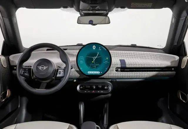 车内部分,经典的圆形中控屏得以保留,并且继承了更多的功能。材质方面,全车还摒弃了皮革材质,转而大面积使用织物材料包覆,这种材质是MINI专门开发的针织工艺,均由再生聚酯纤维制成,结构多样、质地精良、易于打理。