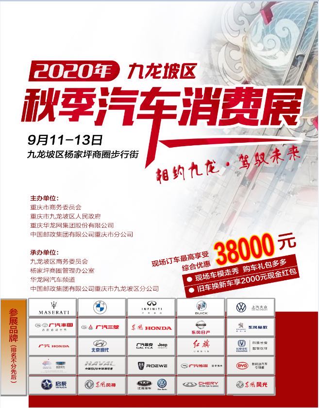 超80款车型参展,还有购车红包,2020年九龙坡区秋季汽车消费展将开幕!