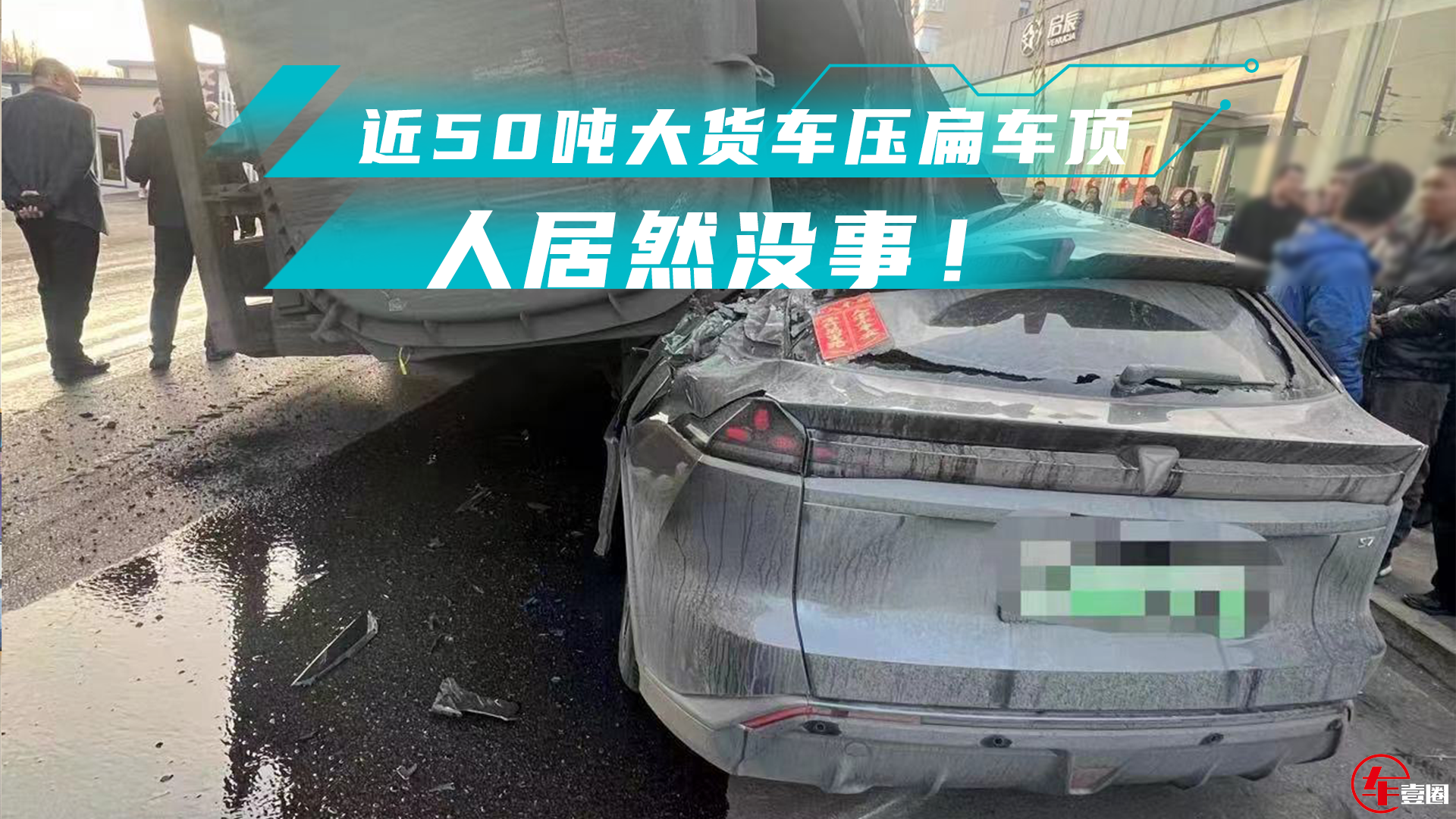 深蓝S7近50吨大货车压扁车顶,车里的人居然没事!这究竟是人命硬?还是车硬?... [详情]